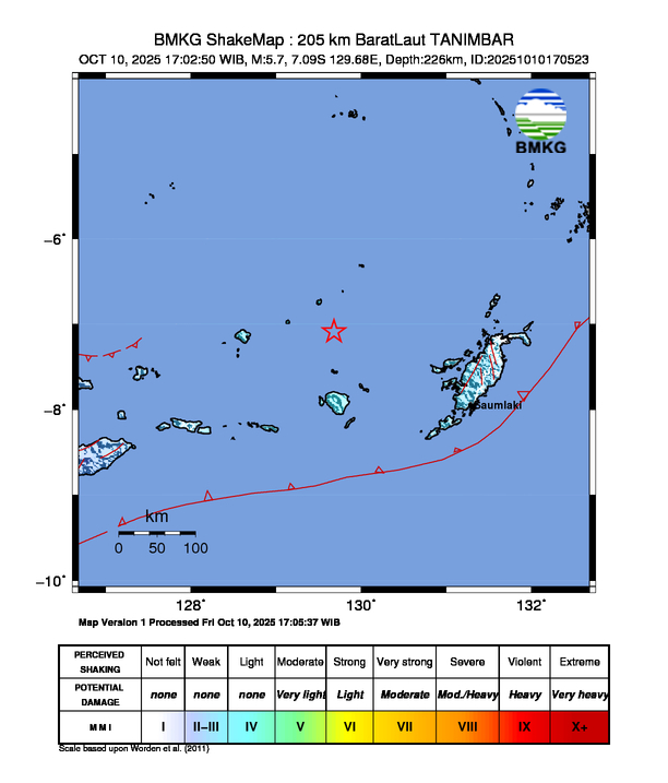 205 km BaratLaut TANIMBAR